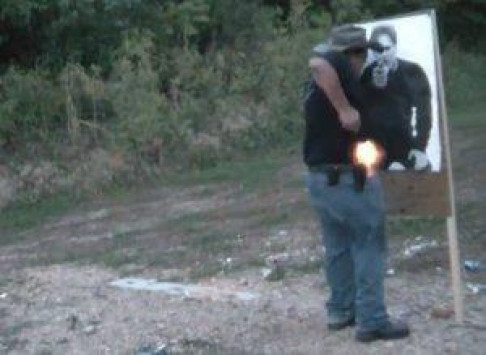 Είχε στήσει λοιπόν ένα στόχο και στην προσπάθεια του να τραβήξει γρήγορα το όπλο για να “προστατευτεί” από την υποτιθέμενη επίθεση πυροβόλησε το μπούτι και το πόδι του. Ο ίδιος ανέβασε το βιντεάκι στο ίντερνετ για να δείξει στον κόσμο πόσο επικίνδυνα είναι τελικά τα όπλα.