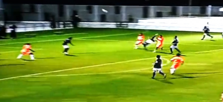 Στην προσπάθειά του να διώξει τη μπάλα ο Νιγηριανός, έπειτα από σέντρα μέσα στην περιοχή, θέλησε να δώσει θέαμα αλλά του βγήκε... ξινό. Χτύπησε τη μπάλα με την κίνηση του σκορπιού κι εκείνη καρφώθηκε στα δίχτυα της ομάδας του!
