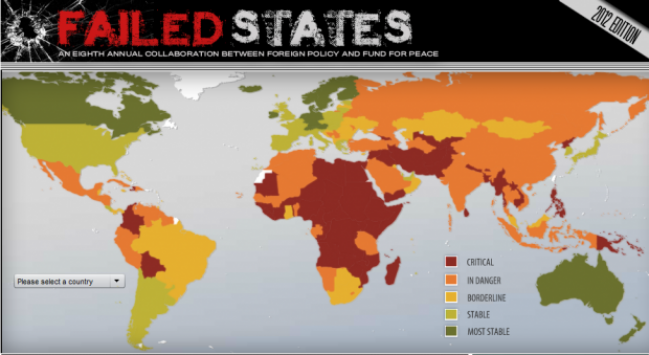 Όμως ενώ η συντριπτική πλειοψηφία των χωρών στην κορυφή του Δείκτη είναι διαλυμένα κράτη που βρίσκονται στην Αφρική, την Ασια και την Μέση Ανατολή η Δυσή δεν είναι καθόλου προστατευμένη απο τους κινδύνους κατάρευσης. Η Ελλάδα είναι στο κέντρο αυτης της κρίσης που κατατρώει την ζώνη του ευρώ τα τελευταία δύο χρόνια.