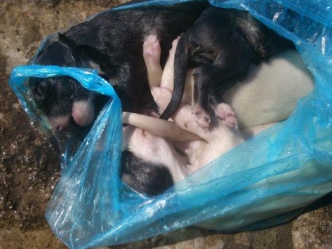 Στο λιμάνι της Ιτέας χθες (25-04-2013) μπροστά στα μάτια των μαθητών, που έκαναν εκδρομή, έξι κουταβάκια πάλευαν απεγνωσμένα μέσα στη θάλασσα για να επιπλεύσουν κλεισμένα σε μια πλαστική σακούλα.