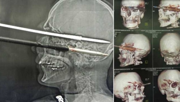 Η τύχη είναι όπως θα δείτε και στο βίντεο, ότι με κάποιο μαγικό τρόπο, το καμάκι δεν πείραξε κάποιο ζωτικό σημείο του εγκεφάλου, και μετά από πολύωρες επεμβάσεις ο άνδρας, έζησε. Έχασε μόνο το μάτι του.