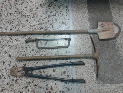 Κατά τη διάρκεια των ερευνών βρέθηκαν και κατασχέθηκαν τέσσερα εργαλεία, τα οποία χρησιμοποίησαν οι δράστες για την απόπειρα κλοπής.